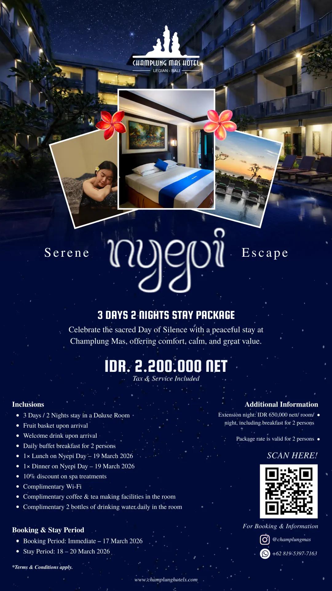 “Enjoy staying at Champlung Mas Hotel & Spa Legian, let our Balinese warm welcome and friendly team will ensure you have a memorable stay every time you visit us”